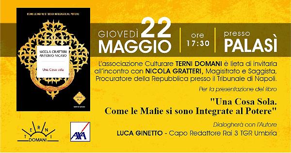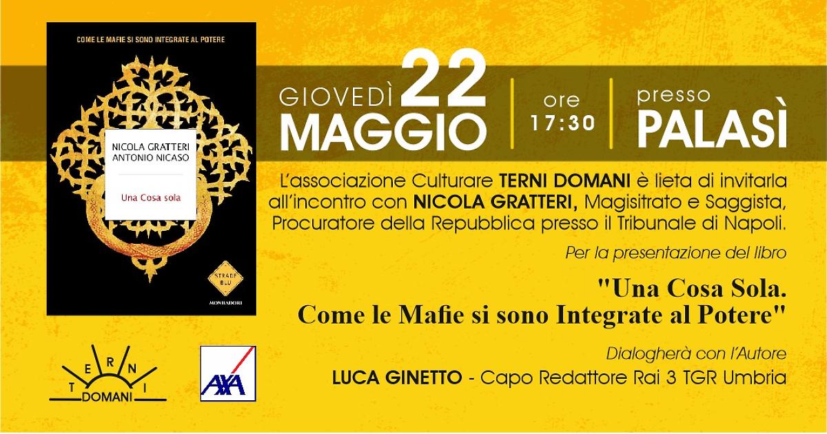 Sarà l'occasione per presentare il libro di Nicola Gratteri ed Antonio Nicaso dal titolo "Una Cosa Sola. Come le Mafie si sono integrate al Potere". Dialogherà con il dottor Nicola Gratteri, il capo redattore di Rai Tg3 Umbria, Luca Ginetto.