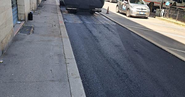 La macchina tappabuche in azione a Terni anche lunedì 26 maggio. Stavolta gli operai del Comune hanno proceduto alla riasfaltatura di viale Martiri della Libertà, una strada che era diventata piena di buche pericolose per i passanti e le automobili in transito.