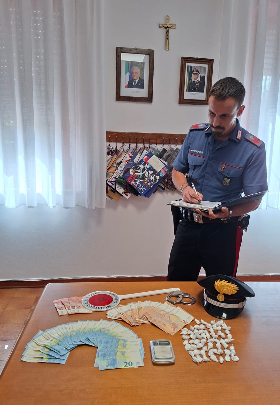 Fermato e sottoposto a controllo, il 25enne non ha saputo giustificare la propria presenza in città ed il suo atteggiamento visibilmente nervoso ha indotto i Carabinieri a procedere ad una verifica più approfondita, sottoponendo a perquisizione sia il giovane che il veicolo. La specifica attività ha portato al rinvenimento di ben 62 dosi di cocaina, del peso complessivo di circa 42 grammi, quasi tutte occultate sulla persona, ad eccezione di un paio rinvenute sul veicolo e della somma in denaro di quasi 3.000 euro, ritenuta provento dell’attività di spaccio, il tutto posto in sequestro.