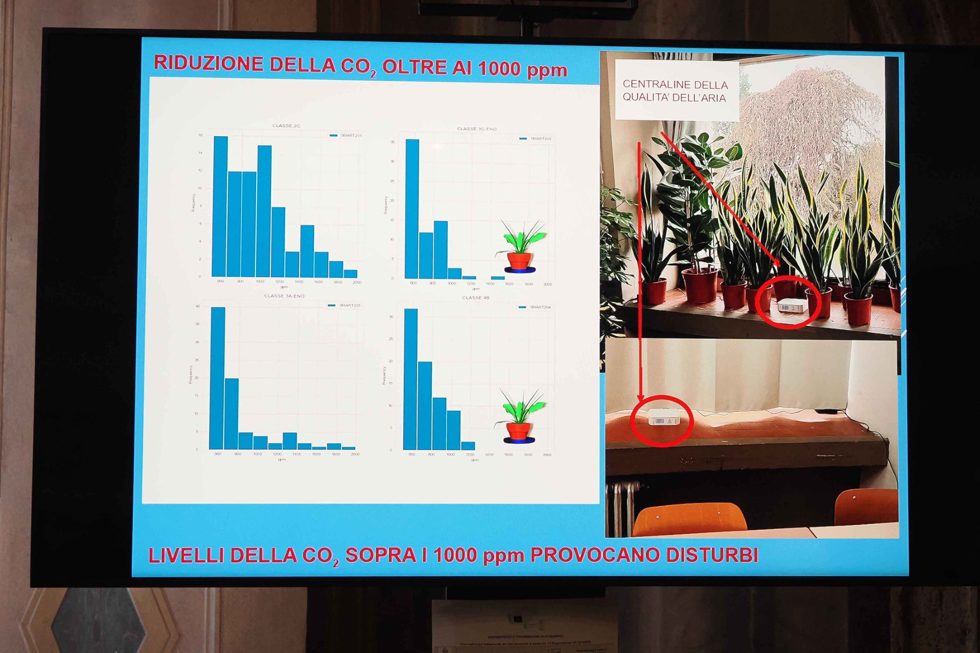 Decisivo, in tutto il progetto, il ruolo del Garden Club che ieri era presente con la presidente Lorenzina Bolli e numerose socie, tra cui Laura Chiari, che ha seguito tutte le fasi dell’iniziativa. La presidente Bolli ha sottolineato che si tratta del “primo test condotto in una scuola umbra sull’uso delle piante per migliorare la qualità dell’aria indoor ed il benessere psico-fisico degli alunni”. “L’unico precedente - ha aggiunto la professoressa Baraldi - lo abbiamo avuto a Firenze. E la presenza delle piante ha portato ad una riduzione fino al 75% dei livelli di anidride carbonica e del 15% delle polveri sottili. In più si è registrata una diminuzione delle temperature ed un aumento contestuale del tasso di umidità”. Tra le piante selezionate ci sono la Sanseveria, la Chamadorea, la Yucca, il Ficus e la Schefflera.