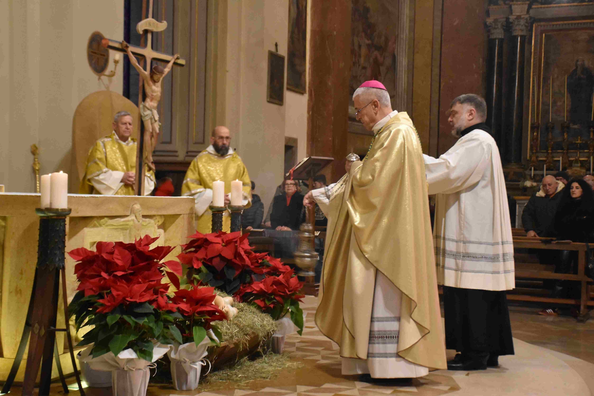 Celebrata nella cattedrale di Terni la santa messa della Notte di Natale presieduta dal vescovo della diocesi di Terni, Narni e Amelia, monsignor Francesco Antonio Soddu, che ha rivolto il suo augurio alla comunità diocesana e alle tante persone presenti in chiesa, che ha salutato singolarmente al termine della celebrazione. Hanno concelebrato il parroco della cattedrale don Alessandro Rossini, don Marcello Giorgi e don Francesco De Santis.