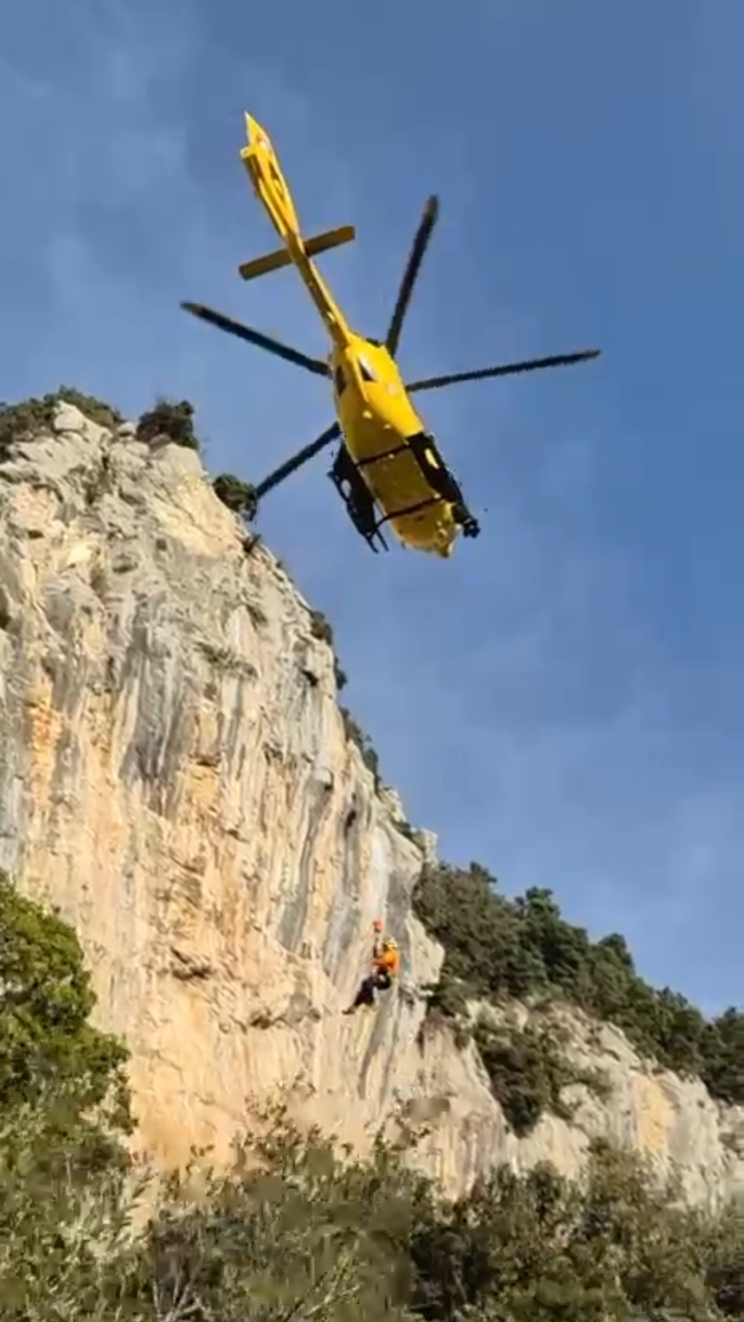 Spettacolare soccorso di un climber rimasto infortunato mentre arrampicava sulla Falesia di Ferentillo.