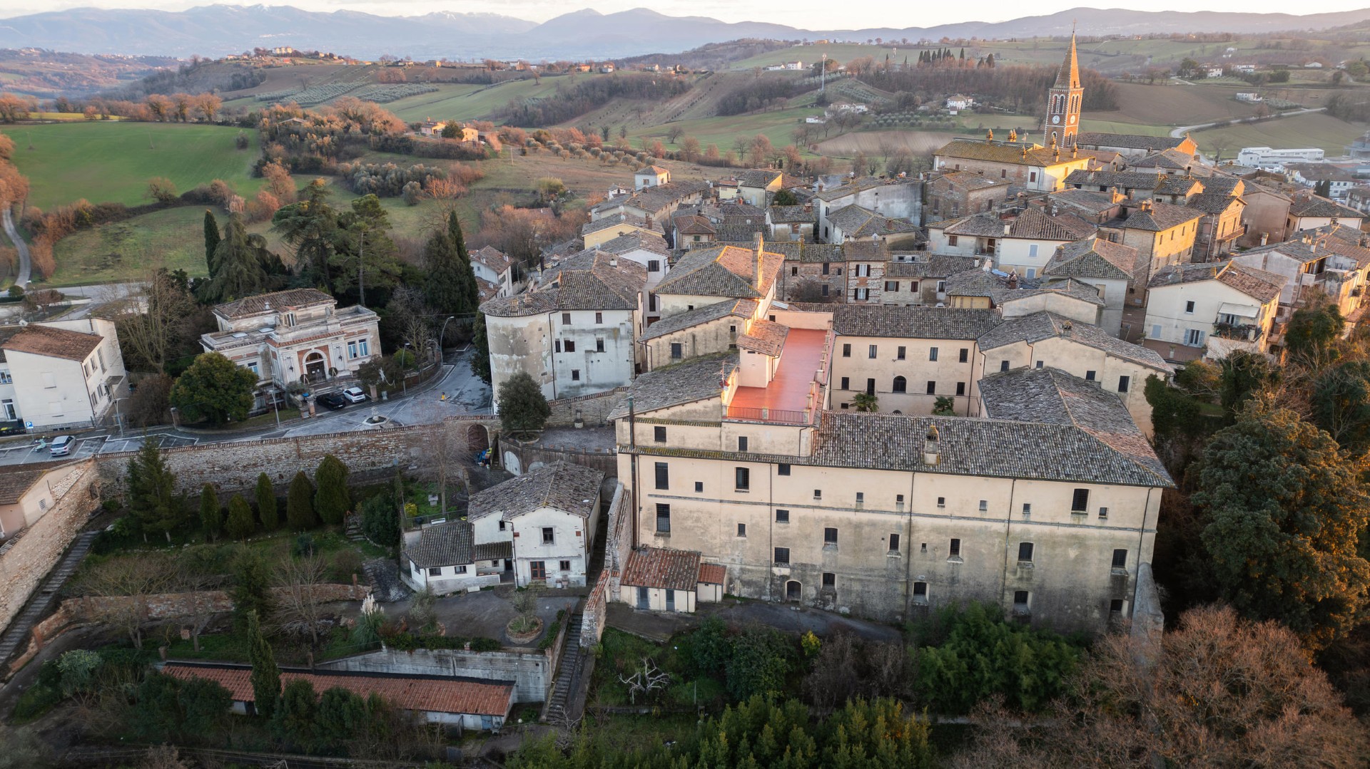 Il monastero di S. Chiara, fondato per volontà testamentaria dal nobile Cinthio Accorsi nel 1649, si impone nel contesto architettonico del piccolo borgo medievale; posizionato nella parte settentrionale dell’abitato comprende un vasto giardino cinto da mura e si eleva, con diversi corpi di fabbrica, su due e tre piani intorno a un chiostro quadrangolare. Sulla destra della facciata, prospiciente l’abitato, è posta la sobria fronte della chiesa annessa al complesso edilizio.