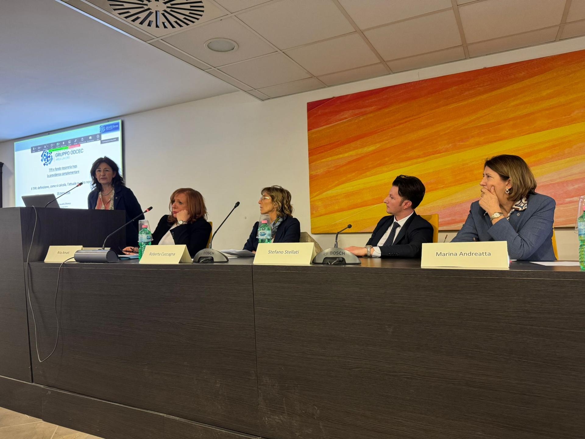 Tra i relatori c’erano anche la dottoressa Mariacarla D'amico dell’Ordine dei dottori commercialisti di Roma, il dottor Francesco Angeli dell’Ordine dei dottori commercialisti di Terni che ha affrontato il tema del Tfr nelle procedure concorsuali, il dottor Lorenzo Rossi dell’Inps di Perugia, e l’avvocato Alessandro Bugli, esperto di previdenza complementare. Moderatrice dell’evento è stata la dottoressa Rita Amati dell’Odcec di Terni con delega all’area lavoro.