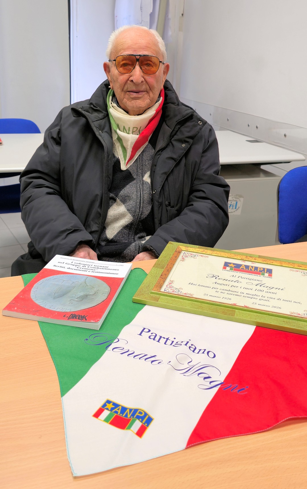 Festa con il comitato provinciale Anpi di Terni per i 100 anni la staffetta partigiana Renato Magni, celebrati il 25 marzo 2026.