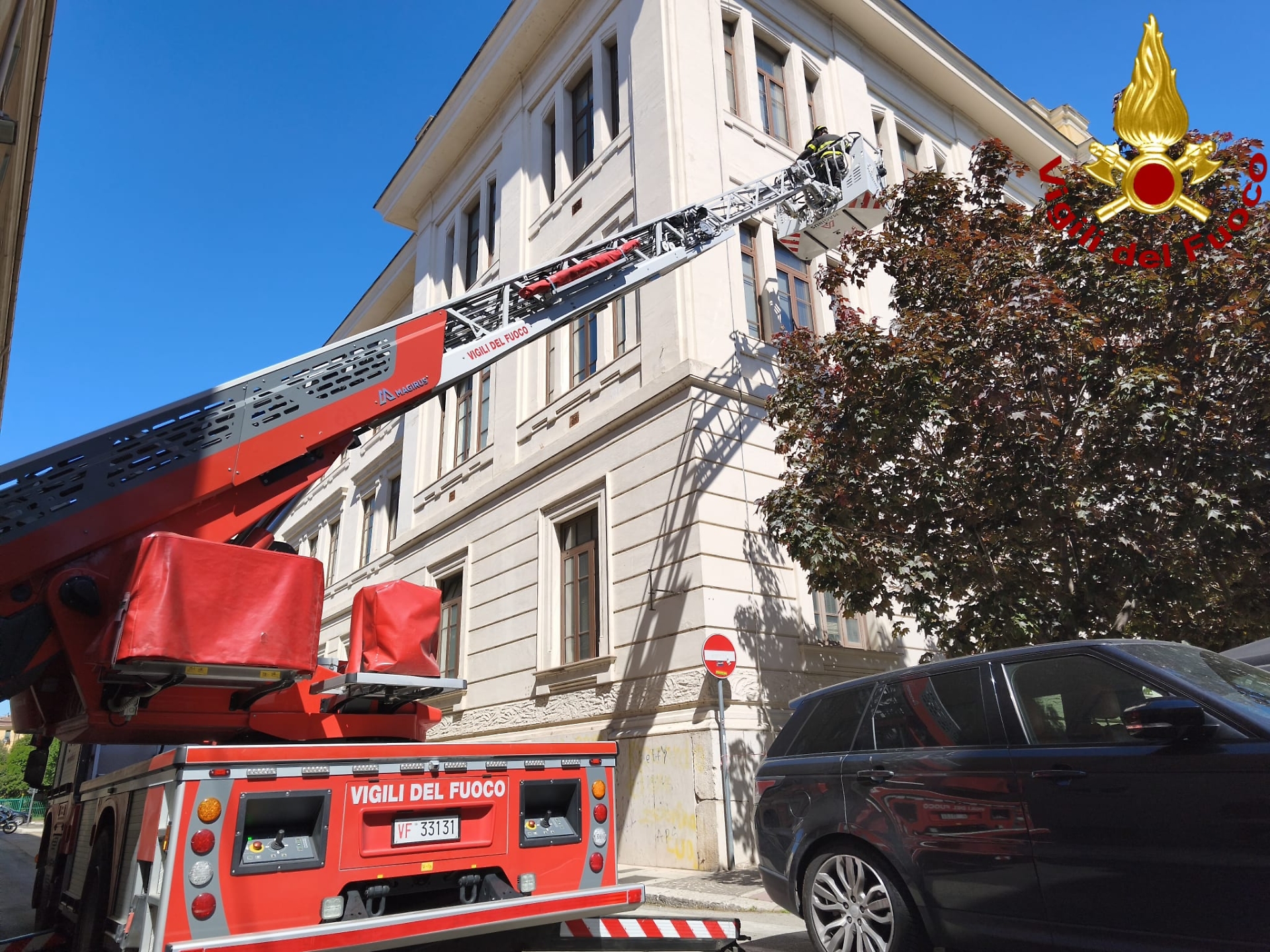 I vigili del fuoco del comando provinciale sono stati chiamati nella mattinata di domenica 26 aprile dopo che alcuni pezzi di cornicione erano caduti nel marciapiede sottostante.