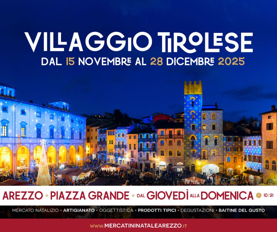 Arezzo si prepara ad accendere la magia del Natale con il ritorno del più grande Villaggio Tirolese d'Italia, giunto alla sua decima edizione. L'iniziativa, promossa da Confcommercio nell'ambito della rassegna "Arezzo Città del Natale 2025", trasformerà ancora una volta la splendida Piazza Grande in un incantevole angolo di Tirolo, dal 15 novembre al 28 dicembre 2025. Oltre alle tradizionali 40 casette di legno con artigianato, oggettistica e idee regalo provenienti da Tirolo, Germania e Austria, il cuore della Toscana ospiterà un programma di eventi e attrazioni pensate per incantare grandi e piccini.