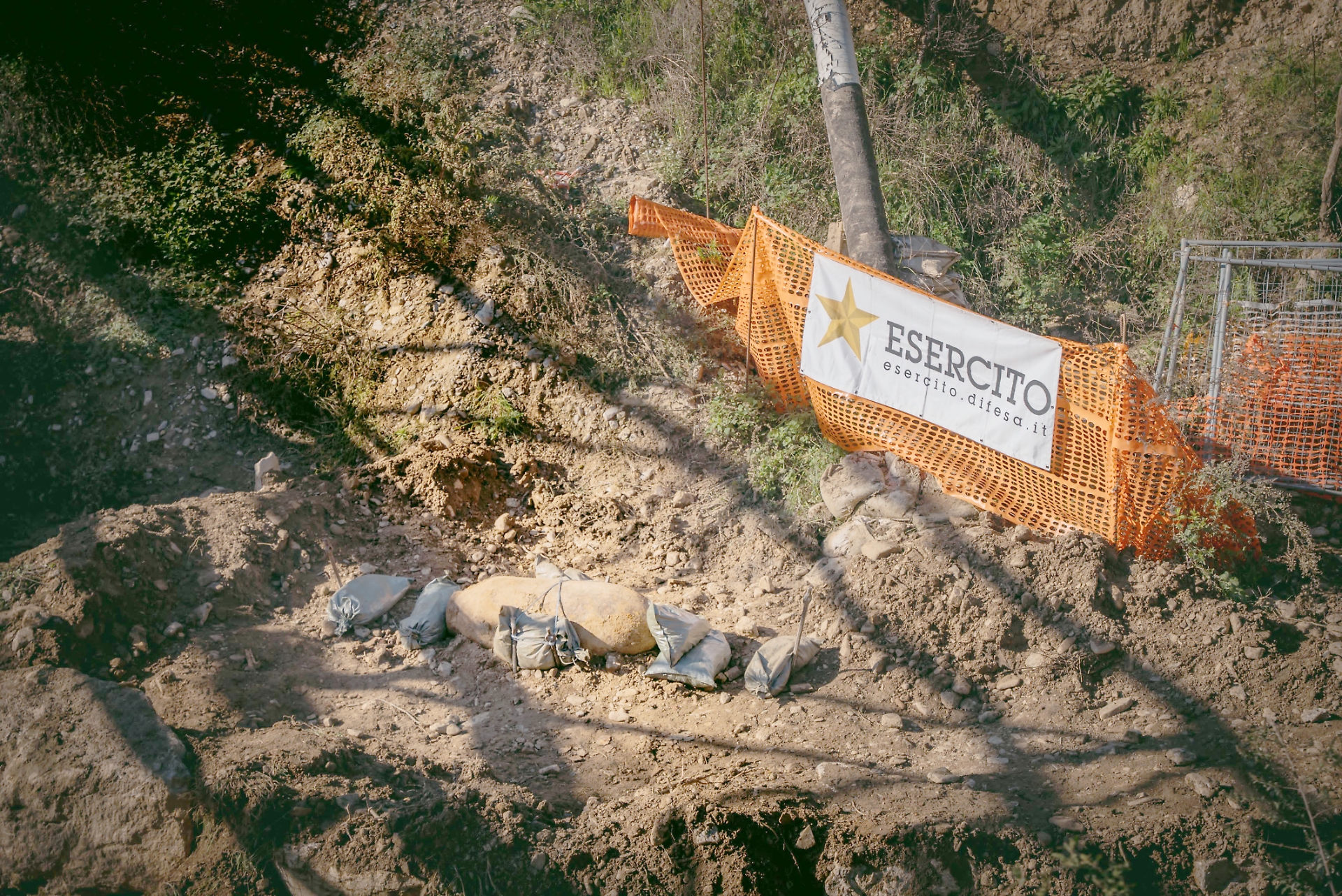 Gli artificieri e l'ordigno bellico ritrovato nei pressi del centro abitato di Marsciano