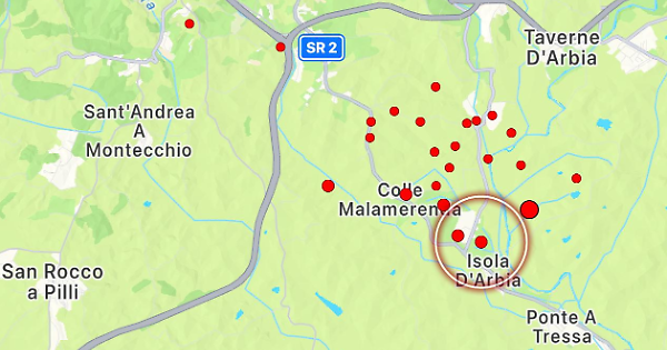Terremoto, paura a Siena per una scossa di magnitudo 3.1. I simografi dell'Istituto nazionale di geofisica e vulcanologia ha registrato l'evento sismico alle ore 19.11. Epicentro nel territorio di Monteroni d'Arbia, a 4 chilometri di profondità. Il terremoto è stato avvertito distintamente dalle persone che in quel momento erano nelle abitazioni, non solo a Monteroni, ma anche a Siena e nei dintorni. La scossa è stata immediatamente bissata da un secondo evento, alle ore 19.17, questa volta di magnitudo 2.3. Pochi secondi e ancora una, stavolta 2.4. Pochi minuti più tardi, alle 19.34 nuovo terremoto, stavolta di magnitudo 2.5. Anche in questo caso epicentro a Monteroni d'Arbia. In mattinata i sismografi avevano già registrato due eventi più lievi. Alle ore 6.23 magnitudo 2 con epicentro a Siena (profondità 7 chilometri), alle 11.42 scossa gemella: sempre magnitudo 2, sempre epicentro Siena (profondità 5 chilometri). Paura tra i cittadini, ma per fortuna non si registrano danni.