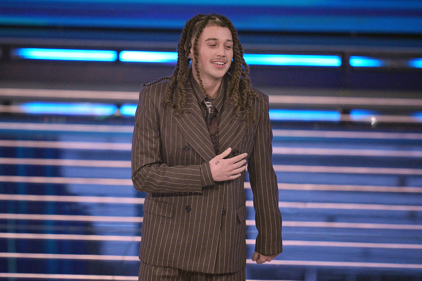 Sayf indossa un abito gessato di GCDS. Tredici Pietro sfoggia un completo poco convincente con giacca grigia e pantalone nero. Altro doppiopetto stile smoking nero per Samurai Jay, mentre il grande ospite della prima serata, Tiziano Ferro, opta per una versione nera con paillettes di Etro. Il più contemporaneo? Fulminacci che invece sceglie un abito grigio dal fit over di Ami Paris con cravatta melanzana.