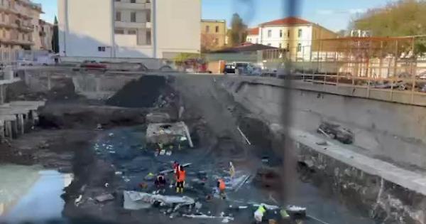 Prime immagini video della scoperta archeologica nel cantiere di via Petrarca, ad Arezzo, dove si costruisce un palazzo residenziale di lusso.