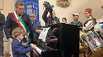 Davanti a lui il sindaco Mario Agnelli che ha propiziato l'operazione alla quale hanno risposto benefattori e cittadini, con offerte di denaro a pianoforti usati.