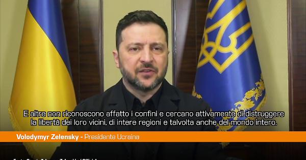 Quattro anni di invasione in Ucraina, Zelensky all'Ue "Putin è la guerra stessa"