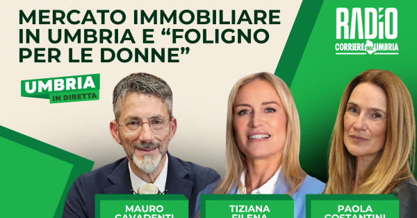 Umbria in diretta, oggi, martedì 4 marzo, Paola Costantini accoglie ai microfoni di Radio Corriere dell'Umbria Mauro Cavadenti Gasparetti, agente e perito della borsa immobiliare dell'Umbria e, in collegamento telefonico, Tiziana Filena, consigliere comunale e direttrice artistica dell'evento Foligno per le Donne - Tante Voci, Un Solo Cuore, in programma domenica 9 marzo al PalaPaternesi