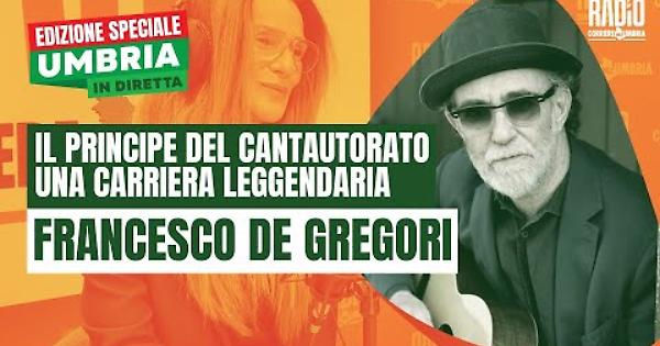 Francesco De Gregori super ospite della puntata speciale di Umbria in diretta di sabato 24 maggio su Radio Corriere dell'Umbria. Il celebre cantautore si racconta in una lunga intervista condotta da Paola Costantini, giornalista e volto della trasmissione, e dal vicedirettore del Gruppo Corriere Alfredo Doni. Curiosità, aneddoti, ricordi ma anche sviluppi futuri di una delle carriere più brillanti e longeve del panorama musicale italiano.