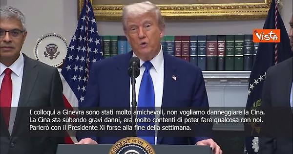“I colloqui a Ginevra sono stati molto amichevoli, il rapporto è molto buono. Non vogliamo danneggiare la Cina. La Cina sta subendo gravi danni, stavano chiudendo fabbriche ed erano molto contenti di poter parlare con noi. Parlerò con il Presidente Xi forse alla fine della settimana.” Così il Presidente degli Stati Uniti Donald Trump in una conferenza stampa.