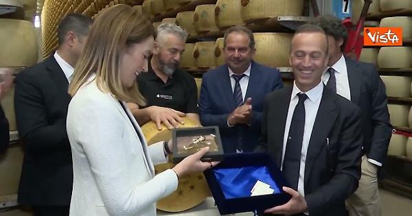 Metsola visita caseificio a Modena, in dono forma Parmigiano Reggiano con suo nome e stelle europee