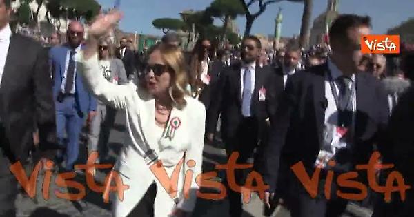 (Agenzia Vista) Roma, 02 giugno 2025 Si è tenuta a Via dei Fori Imperiali la tradizionale parata per la Festa della Repubblica. Presente, tra gli altri, la premier Giorgia Meloni. Nel momento in cui la premier ha attraversato Via dei Fori Imperiali prima di raggiungere la postazione delle autorità, è stata acclamata dalle persone sugli spalti del pubblico. Durante il percorso alcuni cronisti lo stavano riprendendno camminando all'indietro. "Ragazzi - ha detto la premier - non vi ammazzate". "Tipo Michael Jakson!" ha risposto uno dei cronisti. "Esatto! - ha scherzato la premier - state a fa' il moonwalk". Fonte: Agenzia Vista / Alexander Jakhnagiev