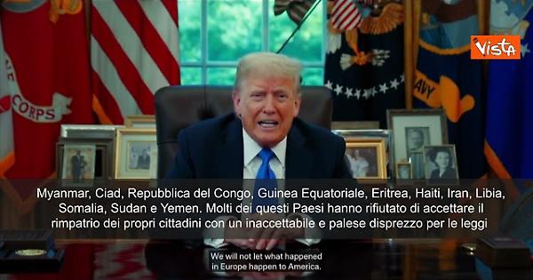 Il recente attacco terroristico a Boulder, in Colorado ha evidenziato gli estremi pericoli che l'ingresso di cittadini stranieri non adeguatamente controllati pone al nostro Paese. I Paesi interessati al divieto sono Afghanistan, Myanmar, Ciad, Repubblica del Congo, Guinea Equatoriale, Eritrea, Haiti, Iran, Libia, Somalia, Sudan e Yemen. Molti dei questi Paesi hanno rifiutato di accettare il rimpatrio dei propri cittadini con un inaccettabile e palese disprezzo per le leggi sull'immigrazione degli Stati Uniti. Inoltre, ho anche disposto il divieto di ingresso ai cittadini stranieri che desiderano venire negli Stati Uniti per partecipare, esclusivamente o sostanzialmente, a un programma di studio presso l'Università di Harvard". Lo ha annunciato Trump in un videomessaggio.