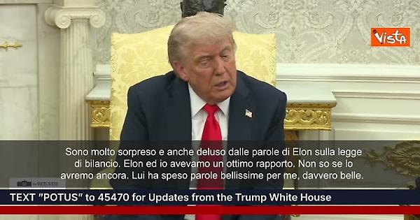 (Agenzia Vista) Usa, 05 giugno 2025 Sono molto sorpreso e anche deluso dalle parole di Elon sulla legge di bilancio. Elon ed io avevamo un ottimo rapporto. Non so se lo avremo ancora. Lui ha speso parole bellissime per me, davvero belle. Mi ha sostenuto, è stato al mio fianco, ha detto che avevo ragione su tutto. Ed è vero, avevo ragione su tutto. Ed ho ragione anche sulla mia legge, “Big Beautiful Bill”. Così Trump alla Casa Bianca. X Fonte: Agenzia Vista / Alexander Jakhnagiev