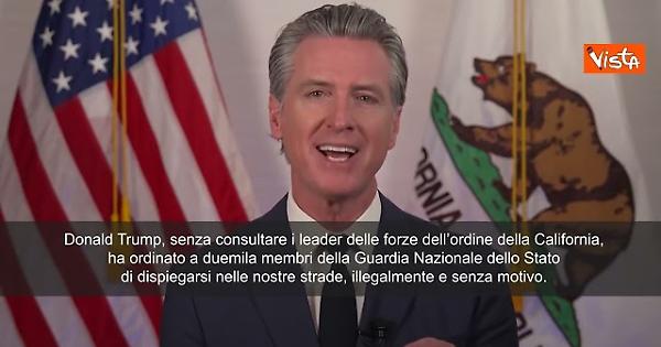 Donald Trump, senza consultare i leader delle forze dell’ordine della California, ha ordinato a duemila membri della Guardia Nazionale dello Stato di dispiegarsi nelle nostre strade, illegalmente e senza motivo. Questo sfacciato abuso di potere da parte di un presidente in carica ha infiammato una situazione già esplosiva, mettendo a rischio la nostra gente, i nostri agenti e persino la Guardia Nazionale. Donald Trump ha scelto ancora l’escalation, ha scelto la forza.