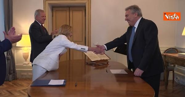 Cerimonia di giuramento del Sottosegretario alla Presidenza del Consiglio, Luigi Sbarra, al quale il Presidente del Consiglio, Giorgia Meloni, intende conferire la delega per le politiche del Sud.
