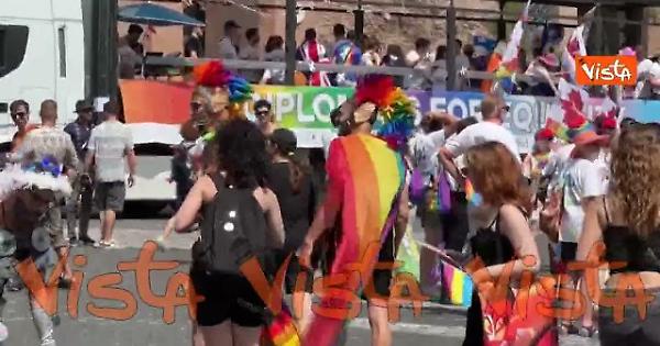 "Free animals", i cartelli degli animalisti travestiti da frati al Pride di Roma.