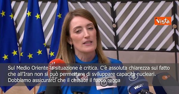 “Sul Medio Oriente, la situazione è critica. C'è un'ampia richiesta di de-escalation. C'è assoluta chiarezza sul fatto che all'Iran non si può permettere di sviluppare capacità nucleari. Dobbiamo assicurarci che il cessate il fuoco regga e dobbiamo anche lavorare per un cessate il fuoco a Gaza, affinché gli aiuti umanitari tanto necessari e vitali raggiungano tutti coloro che ne hanno disperatamente bisogno.”. Così la Presidente del Parlamento europeo Roberta Metsola a margine del Consiglio europeo
