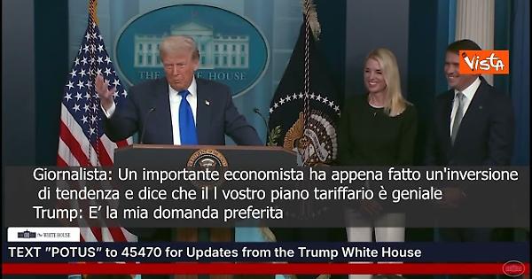 “Dovrebbero tornare a studiare economia.” Così il Presidente degli Stati Uniti Donald Trump, durante una conferenza stampa, a un giornalista che gli chiede cosa risponde ai critici del suo piano tariffario.