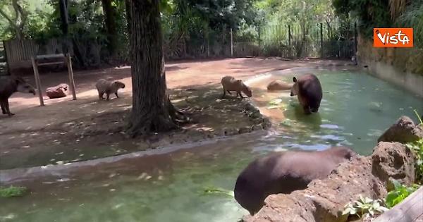 Ghiaccioli di frutta per gli animali del Bioparco di Roma contro il caldo, ecco tapiri e capibara