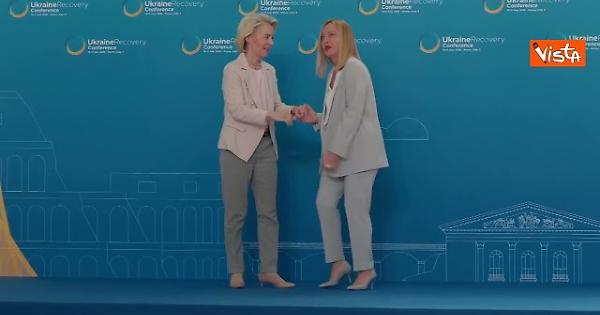 Si è aperta a Roma, presso la Nuvola di Fuksas, la Conferenza per la Ricostruzione dell'Ucraina. Ecco l'arrivo di Ursula von der Leyen.