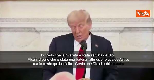 “È straordinario pensare che solo un anno fa, in questa settimana, il mio tempo sulla Terra stava per finire. Avrei potuto non essere qui con voi oggi...Io credo che la mia vita è stata salvata da Dio. Alcuni dicono che è stata una fortuna, altri dicono qualcos'altro, ma io credo qualcos'altro. Credo che Dio ci abbia aiutato”. Così Trump alla Casa Bianca con Rutte (Nato).
