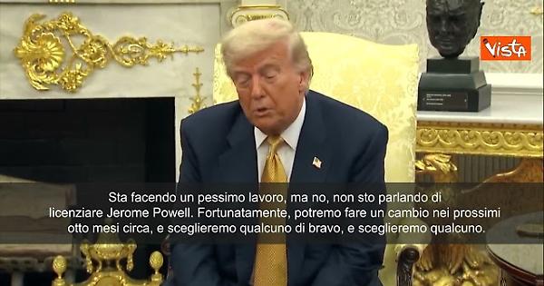 "Sta facendo un pessimo lavoro, ma no, non sto parlando di licenziare Jerome Powell. Fortunatamente, potremo fare un cambio nei prossimi otto mesi circa, e sceglieremo qualcuno di bravo, e sceglieremo qualcuno. Voglio solo un lavoro onesto. Vogliamo vedere tassi di interesse più bassi. Il nostro Paese se lo merita. Non escludo nulla, ma penso che un licenziamento di Jerome Powell sia altamente improbabile", così Donald Trump alla casa Bianca parlando con i cronisti.