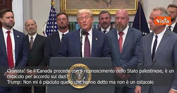 “Non mi è piaciuto quello che hanno detto, ma questa è la loro opinione. Non è un ostacolo, ma per ora non abbiamo parlato ancora con il Canada.” Così il Presidente degli Stati Uniti Donald Trump, sulla decisione del Canada di riconoscere lo Stato di Palestina.