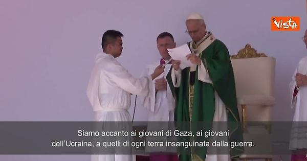 "In comunione con Cristo, nostra pace e nostra speranza per il mondo, siamo più vicini che mai ai giovani che soffrono i mali più gravi, causati da altri esseri umani. Siamo accanto ai giovani di Gaza, ai giovani dell’Ucraina, a quelli di ogni terra insanguinata dalla guerra" così Papa Leone XIV intervenendo a conclusione della messa finale del Giubileo dei Giovani alla Vela di Tor Vergata a Roma.