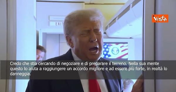 "Credo che stiano cercando di negoziare. Lui sta cercando di preparare il terreno. Voglio dire, nella sua mente, questo lo aiuta a raggiungere un accordo migliore. In realtà lo danneggia. Ma nella sua mente, questo lo aiuta a raggiungere un accordo migliore.” Così il Presidente degli Stati Uniti Donald Trump in volo per l'Alaska per incontrare il Presidente russo Vladimir Putin.