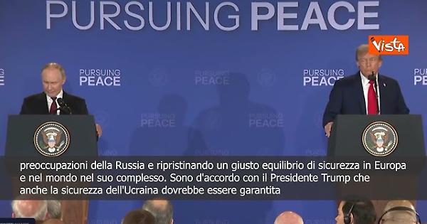 "Sono d'accordo con il Presidente Trump che naturalmente anche la sicurezza dell'Ucraina dovrebbe essere garantita. Naturalmente, siamo pronti a lavorare su questo. Vorrei sperare che l'intesa che abbiamo raggiunto insieme ci aiuti ad avvicinarci a questo obiettivo e apra la strada alla pace in Ucraina.” Così il Presidente russo Vladimir Putin durante la conferenza stampa sul vertice Russia-Usa.