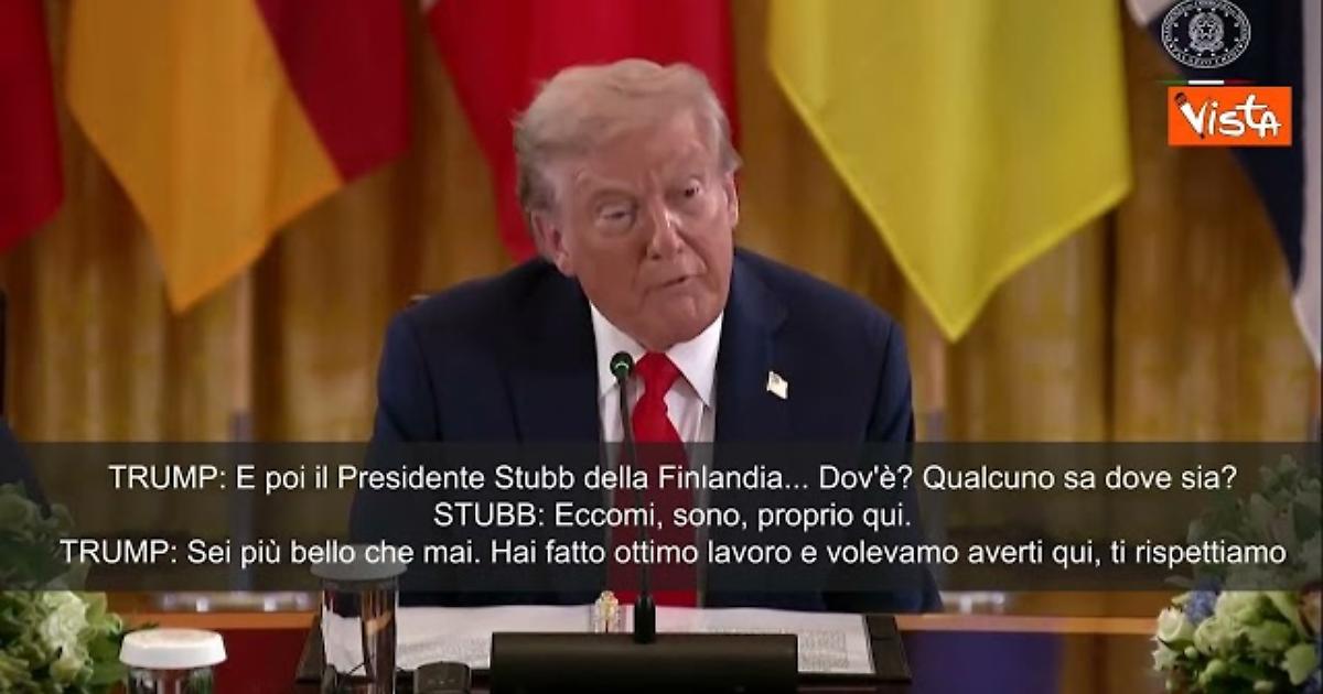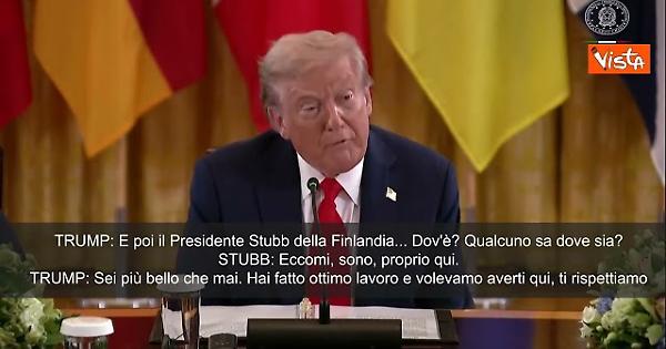 Siparietto Trump Stubb durante l'incontro sulla guerra in Ucraina alla Casa Bianca con Zelensky e i leader Ue, il Presidente Usa non trova l'omologo finlandese, seduto davanti a lui, che gli dice: "Eccomi, sono qui". Il tycoon allora gli dice: "Sei più bello che mai, non ti ho mai visto così".