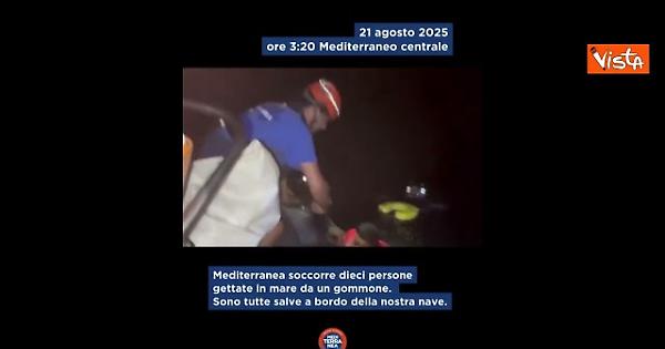 L'Ong Mediterranea Saving Humans ha soccorso dieci migranti in acque internazionali al largo della Libia, che si erano gettati in mare da un gommone che si è poi allontanato.