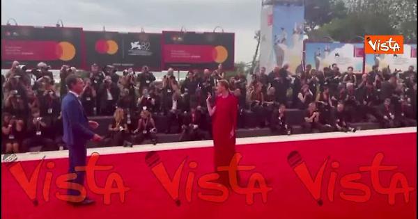 La conduttrice dell'82esima Mostra del Cinema di Venezia Emanuela Fanelli sfila sul red carpet con un abito rosso per la seconda serata della kermesse.