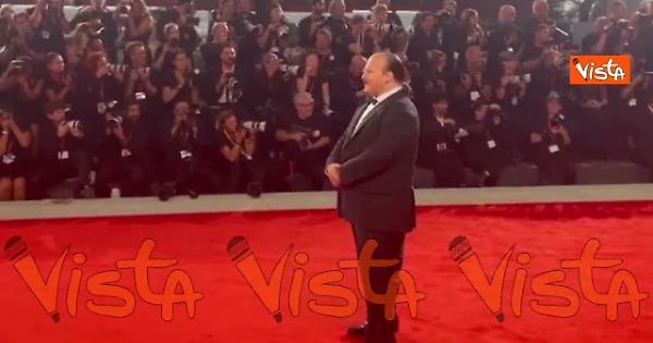 L'attore Stavros Halkias sfila sul red carpet del film Bugonia all'82esima Mostra del Cinema di Venezia.