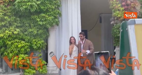 Angela Caloisi e Paolo Crivellin arrivano al Lido, poi posano per i fotografi in occasione dell'82esima Mostra del Cinema di Venezia.