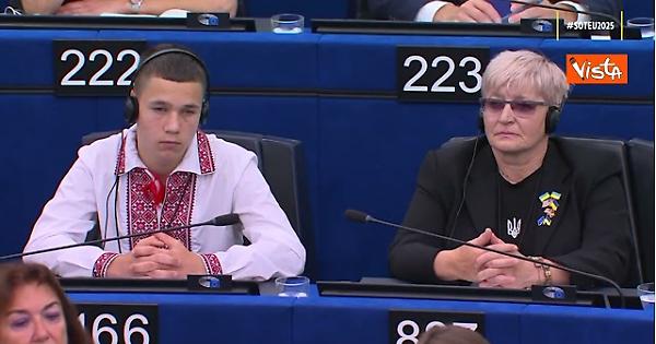 Momento di commozione al Parlamento europeo a Strasburgo durante il discorso della Presidente della Commissione europea Ursula Von der Leyen, che racconta la storia di un ragazzo ucraino rapito dai russi e salvato dalla nonna. Le immagini della standing ovation del Parlamento europeo