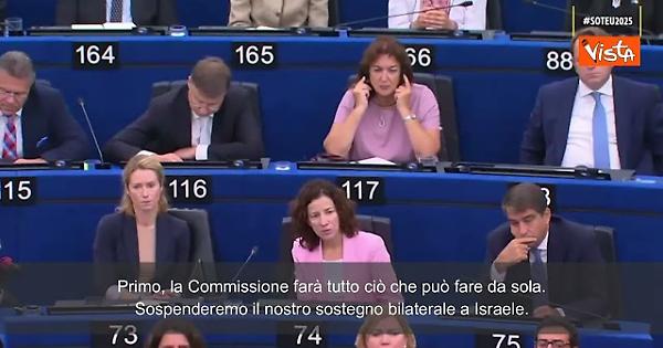 "L’Europa deve fare di più. Molti Stati membri si sono già mossi da soli. Da parte nostra, abbiamo proposto di sospendere alcune parti dei nostri finanziamenti Horizon. Ma questa proposta è bloccata senza una maggioranza. Dobbiamo superare questo stallo. Non possiamo permetterci di rimanere paralizzati. Ed è per questo che proporrò un pacchetto di misure per tracciare una via da seguire. Primo, la Commissione farà tutto ciò che può fare da sola. Sospenderemo il nostro sostegno bilaterale a Israele. Sospenderemo tutti i pagamenti in questi ambiti, senza però intaccare il nostro lavoro con la società civile israeliana o con Yad Vashem. Secondo, avanzeremo due ulteriori proposte al Consiglio. Proporremo sanzioni contro i ministri estremisti e contro i coloni violenti. E proporremo anche una sospensione parziale dell’Accordo di Associazione sulle questioni commerciali" così la Presidente della Commissione Europea Ursula Von Der Leyen nel corso del discorso sullo Stato dell'Unione.
