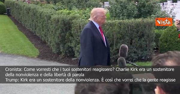 (Agenzia Vista) Virginia, 12 settembre 2025 “Kirk era un sostenitore della nonviolenza. È così che vorrei che la gente reagisse.” Così il Presidente degli Stati Uniti Donald Trump sull'omicidio di Charlie Kirk, a margine della cerimonia per il 24° anniversario dell'attentato dell’11 settembre al Pentagono. Courtesy: The White House Fonte: Agenzia Vista / Alexander Jakhnagiev
