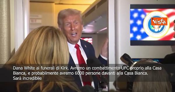 “Avremo un combattimento UFC proprio alla Casa Bianca, e probabilmente avremo 6000 persone davanti alla Casa Bianca. Sarà incredibile.” Così il Presidente degli Stati Uniti Donald Trump sull'Air Force One dopo aver partecipato al funerale di Charlie Kirk, ucciso nel campo universitario dello Utah.