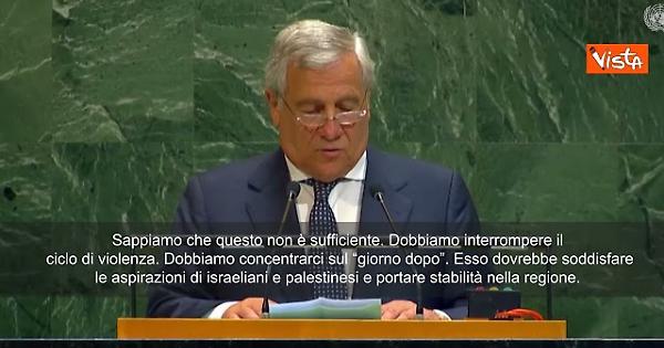 Come disse Papa Leone XIV, non possiamo abbandonare la speranza di pace. La soluzione dei due Stati, con la coesistenza pacifica di palestinesi e israeliani, è l'unica soluzione praticabile per garantire un futuro di pace e prosperità in Medio Oriente. Per raggiungere questo obiettivo, è fondamentale ottenere il cessate il fuoco, la liberazione degli ostaggi e il ripristino del pieno accesso umanitario. Dall'inizio del conflitto, l'Italia ha fornito migliaia di tonnellate di aiuti alla popolazione palestinese. Ringrazio in particolare la Giordania, l'Egitto, gli Emirati Arabi Uniti e tutti i partner regionali che hanno collaborato a questo sforzo cruciale. Abbiamo anche organizzato evacuazioni mediche per curare in Italia centinaia di bambini palestinesi. Sappiamo che questo non è sufficiente", lo ha detto il Ministro degli Esteri Tajani all'assemblea generale dell'Onu.