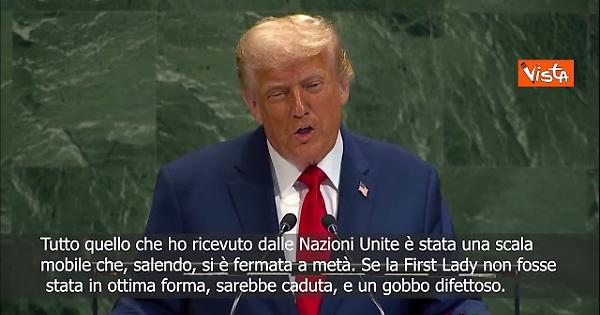 “Queste sono le due cose che ho ricevuto dalle Nazioni Unite. Una scala mobile difettosa e un gobbo difettoso. Grazie mille. E a proposito, ora funziona.” Così il Presidente degli Stati Uniti, Donald Trump, durante il suo intervento all'Assemblea Generale dell'Onu, a New York.