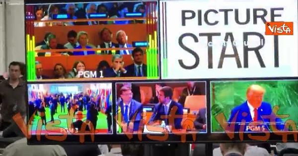 La sala stampa dell'Onu gremita durante il discorso del Presidente Usa Trump durante l'Assemblea generale.