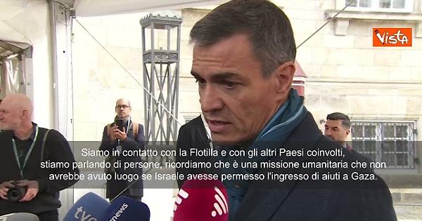 “Siamo in contatto con la Flotilla e con gli altri Paesi coinvolti, stiamo parlando di persone, ricordiamo che è una missione umanitaria che non avrebbe avuto luogo se Israele avesse permesso l'ingresso di aiuti a Gaza. La Flotilla non rappresenta un pericolo o una minaccia per Israele, quindi spero che Netanyahu ne tenga conto”. Lo ha detto il premier Pedro Sanchez a margine del vertice Ue.